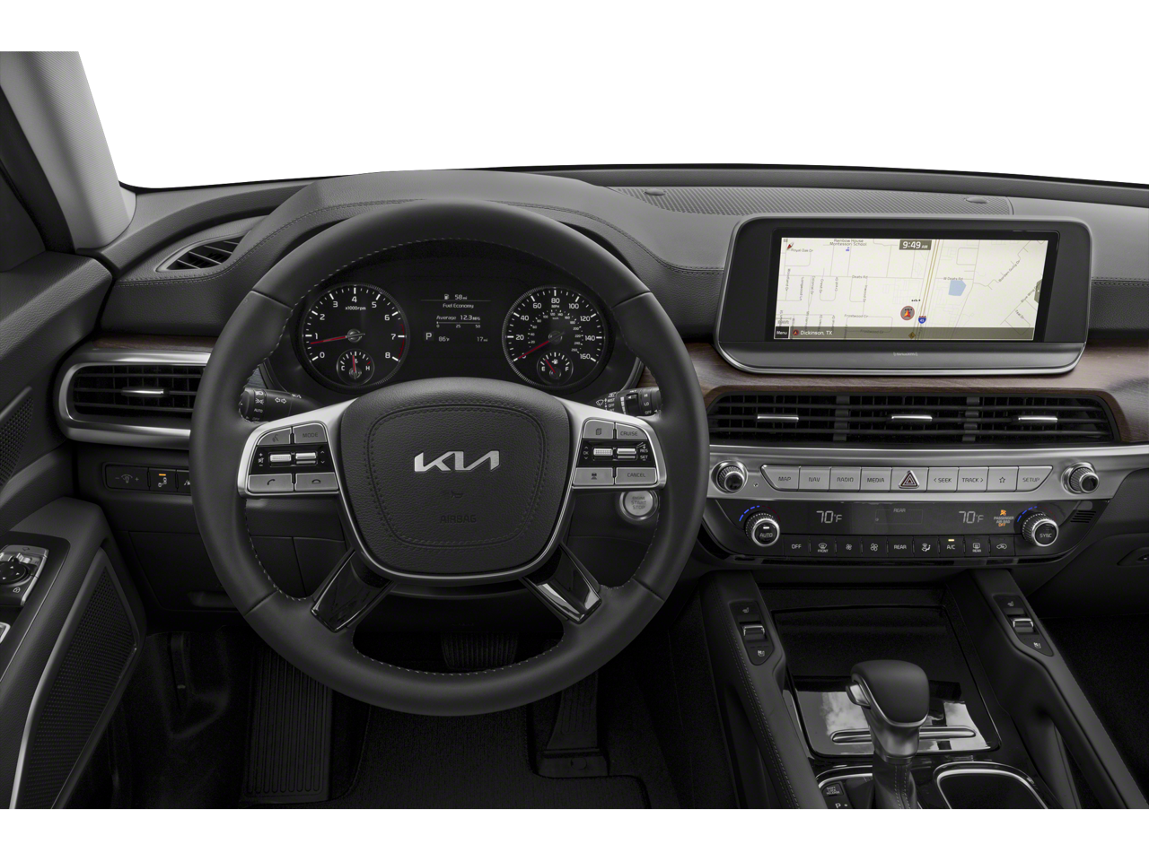Step inside the Telluride EX and you'll be surrounded by a wealth of advanced technology and premium amenities. The Navigation System, Apple CarPlay and Android Auto, and 6-Speaker Audio System keep you connected and entertained. The Dual-Zone Automatic Climate Control, Heated Steering Wheel, and Leather-Wrapped Shift Knob add a touch of luxury to every journey.
