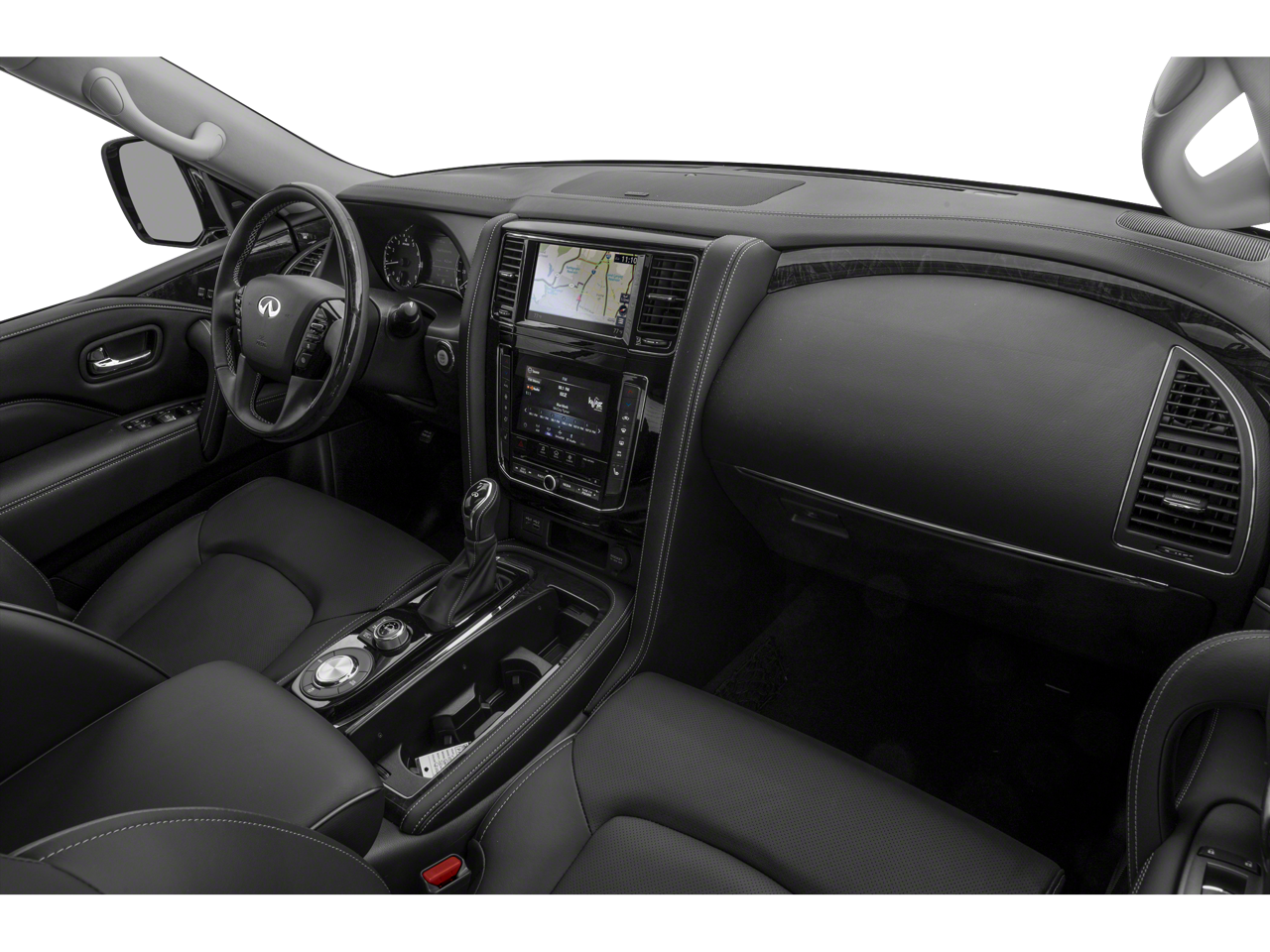 Elevate your driving pleasure with the QX80 Premium Select's advanced safety features, including Automatic Emergency Braking, Blind Spot Monitoring, and Adaptive Cruise Control. These cutting-edge technologies work seamlessly to provide you and your loved ones with the utmost protection on the road.