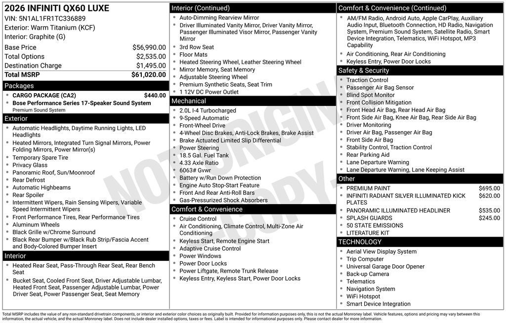 - Vehicle Name: INFINITI QX60